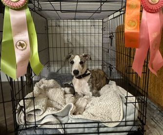 Kye and Erin were absolutely wonderful to work with. From our first interaction to the day we picked up Velo, we knew what to expect and were updated every few days on how the puppies were growing and changing. It became very clear right away how much care and love they put into their dogs and their program, and I am so happy we chose Texas Diamond Whippets for our newest family member. When Velo came home, Kye and Erin made sure we had his schedule, which made it really easy to prepare and know what to expect as we started the potty training process. Since he's been home, he's been a joy (and a rascal!) and we are so happy to call him our own. The potty training and crate training process was already started by Kye and Erin before he came home, so that has been easier than expected as well. Overall, I can't say enough good things about our experience and would do it again in a heartbeat. Thanks, Kye and Erin!
