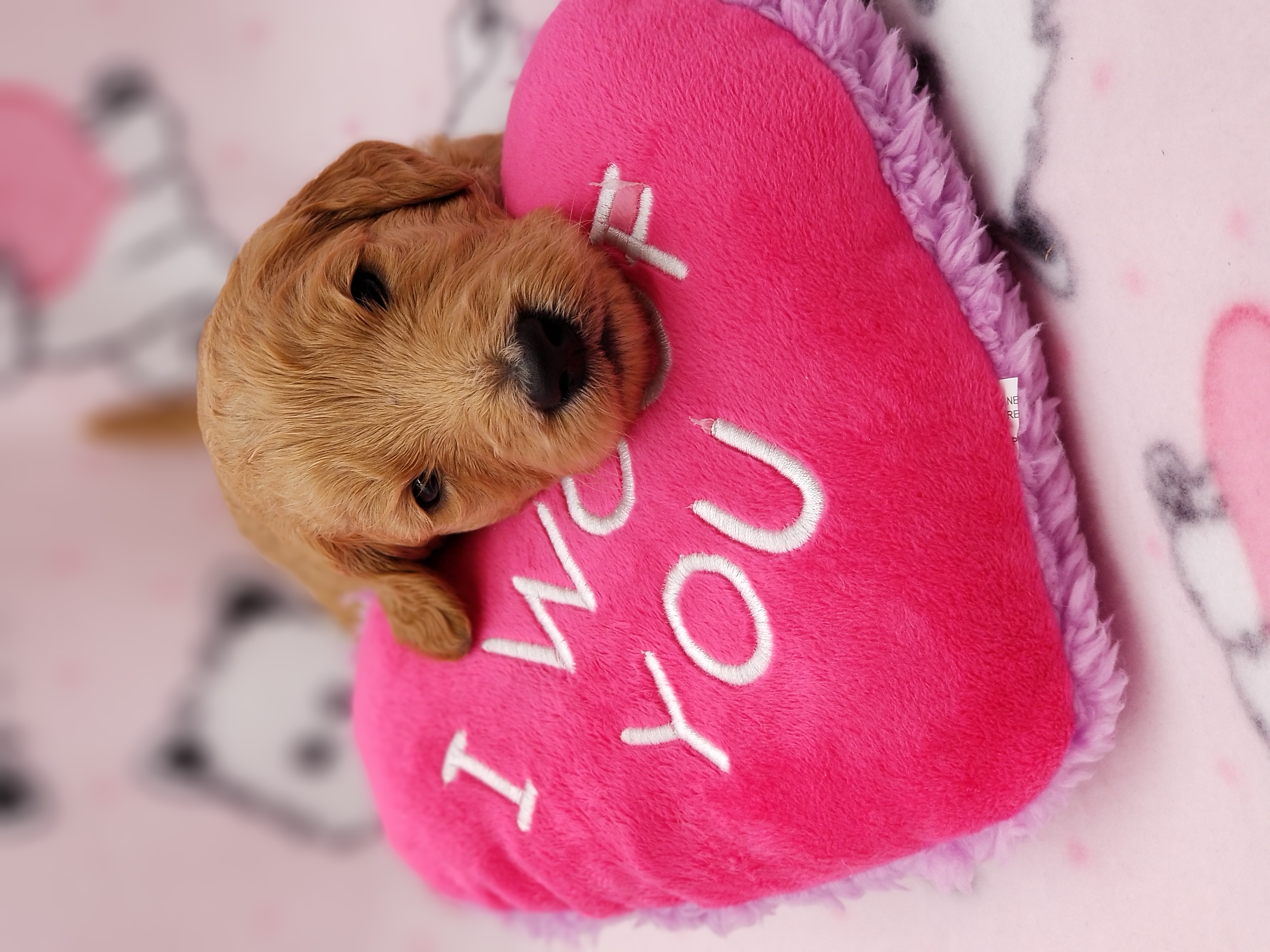 Bella is a female Goldendoodle. Carefully selected as a great representative of her breed, Stacy decided to make her part of their program. Stacy has passed Good Dog’s screening process, which involved a review of their breeding practices, environment, and the mental and physical health of their dogs.