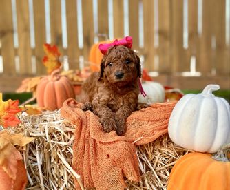 Bambi is a female Goldendoodle. Carefully selected as a great representative of her breed, Stacy decided to make her part of their program. Stacy has passed Good Dog’s screening process, which involved a review of their breeding practices, environment, and the mental and physical health of their dogs.