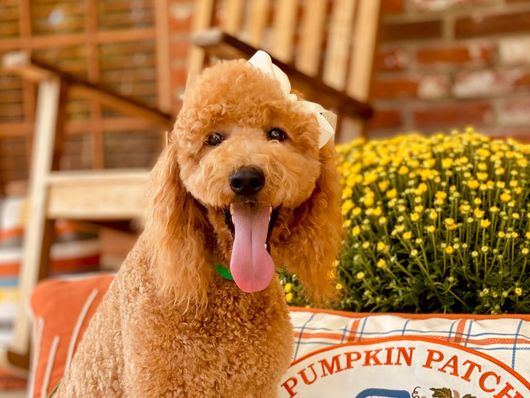 Goose is a male Poodle about 3 years old. Carefully selected as a great representative of his breed, Stacy decided to make him part of their program. Stacy has passed Good Dog’s screening process, which involved a review of their breeding practices, environment, and the mental and physical health of their dogs.