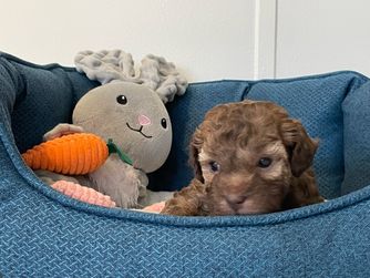 Karen was wonderful to work with. She sent weekly photos of my chosen puppy and really helped with not only pictures but insights into my pups personality. It was 3 weeks til I could pick her up. The next step arranging the meet for pickup was smoothed by Karen. She made a very long round trip to deliver for my convenience. My pup is healthy, active , bright and intelligent and is a happy little tail wagger. I couldn’t have made a better choice of breeder. She is knowledgeable about poodles and I consider her a resource for puppy information. I also know if I need any assistance re information about my pup, Karen is there as a resource. I couldn’t be happier with the whole transaction. It was truly a wonderful experience.