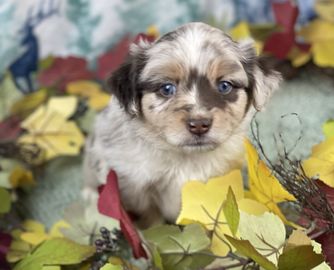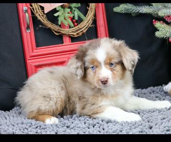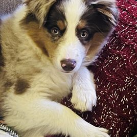 Miniature Australian Shepherd puppies include blue merle and red merle. Colors will vary depending on the parent dogs.