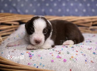 Our puppies include merle and chocolate. Colors will vary depending on the parent dogs.