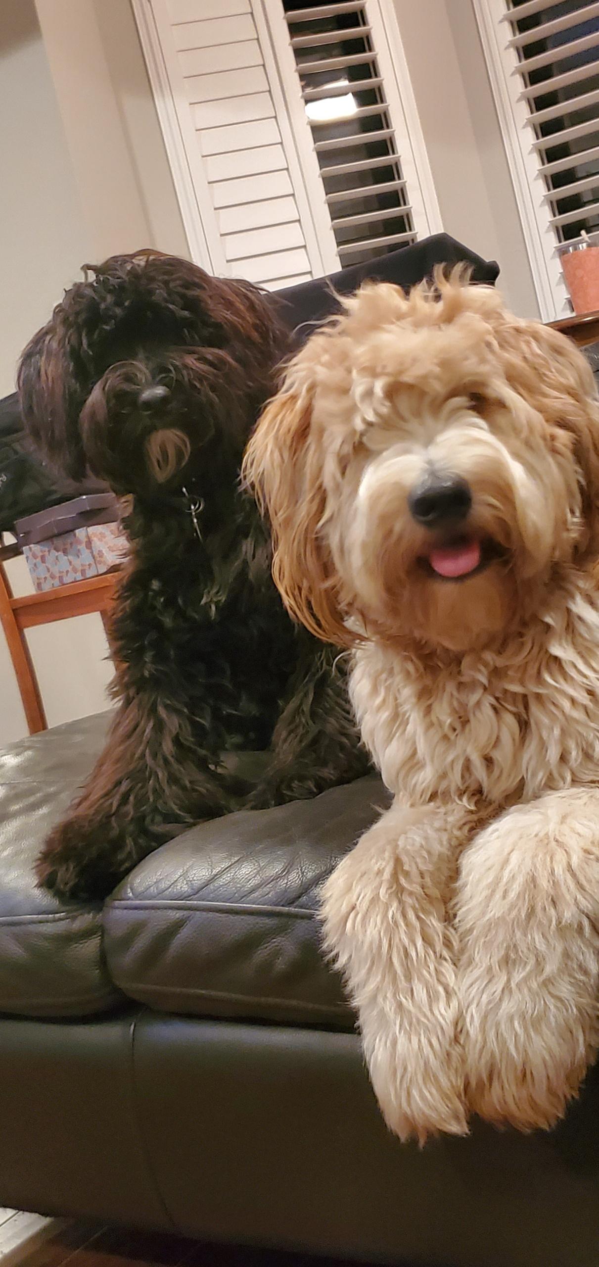 We have several family members with allergies. Our children's first dog was a Soft-coated Wheaten Terrier, Tessa (almost 13), who is still part of our family. We then found whoodles and became enamored with their fun personalities.