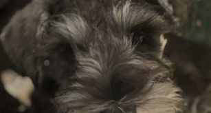 Hannah is a darker salt and pepper, a beautiful color. She is the best mom to these puppies we often forget she is back in the maternity ward because she never barks to tell us she needs to go outside. She is so pleasant to be around with her great disposition that she passes on to her babies.