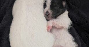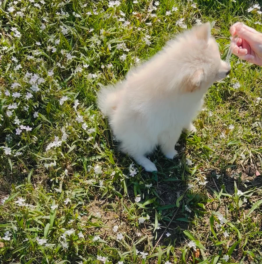 Meet Cashmere, our cherished three-year-old purebred pomeranian dam. At a petite eight pounds, she sports a mismarked black coat — a trait she inherited from her mother, a fellow black Pomeranian born and raised right here in St. Louis, Missouri. Her father, an orange Pomeranian also from St. Louis, rounds out her pedigree. Cashmere is the perfect blend of smart and spirited. She’s obedient and eager to please — especially when treats are involved. Whether she’s tackling a brisk walk, dominating a game of tug-of-war, or showing off her surprisingly graceful swimming skills, she does it all with boundless energy and enthusiasm.