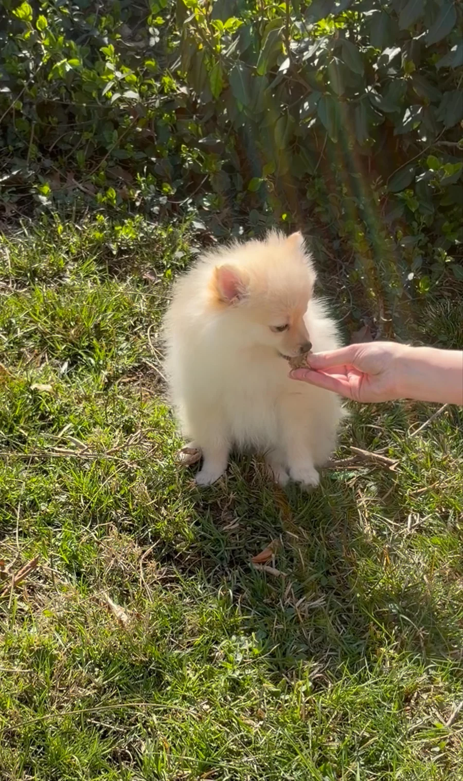 Meet Corduroy, our adored one-year-old, six-pound cream Pomeranian sire. He spent his first eight weeks in Tennessee, where both of his purebred orange Pomeranian parents still live. Corduroy is the very definition of a lap dog — nothing makes him happier than a good belly rub. When he’s not curled up in your arms or dozing in a sunny spot, you’ll find him bounding along hiking trails or gleefully chasing down balls in spirited games of fetch.