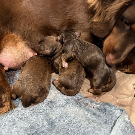 I'm Trinity G., the breeder behind TG Dachshunds located in Haslet, TX. We are an in home small based breeding program located in North Texas. All dogs & puppies are raised in the home with the family. We are a small program that has a handful of litters each year. We focus on quality vs quantity and breed for only the best. Our puppies have the best nature & demeanor which makes them the perfect addition for your family. Each pair has been carefully selected to better the breed with each litter.