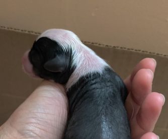 Our Chinese Crested puppies include white and black, white, slate, black white and tan, pink and slate, pink, and black and white. Colors will vary depending on the parent dogs.