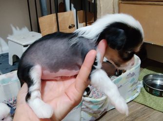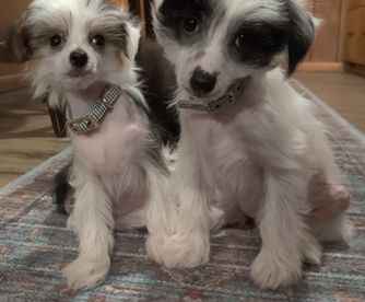 Our Chinese Crested puppies include powderpuff and hairless coat varieties. Coat types may vary depending on the parent dogs.