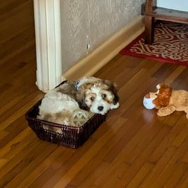 I'm so glad that we connected with Hope of Thats My Puppy in Gay Georgia through Good Dog. The whole process was easy and safe. My husband and I are so happy to have brought home a happy, healthy, loving, sweet cavapoo. We named him Tucker. Tucker is doing great! The transition has been pretty easy. Hope was quick to respond when I texted her and answered all of my puppy questions. She sent me lots of photos and videos of Tucker which sealed the deal, and we knew he was the right pup for us. Our going home pick up was easy. He was transported to the Atlanta airport where I picked him up and flew him home. Hope owns a beautiful kennel in Gay Georgia, which has fantastic Google reviews. I wasn't able to meet Hope in person but I feel like I already know her with all the time we spent chatting about Tucker. Thanks, Hope and Good Dog!