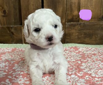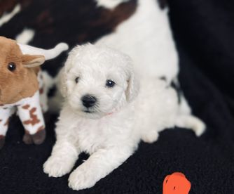 Dottie is a female Bichon Frise. Carefully selected as a great representative of her breed, Jessica decided to make her part of their program. Jessica has passed Good Dog’s screening process, which involved a review of their breeding practices, environment, and the mental and physical health of their dogs.