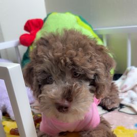 Koko is our beautiful 16-pound Poodle with a rich, chocolate-brown coat that gleams in the sunlight. She is the perfect blend of affectionate and playful, always eager to snuggle up or join in on an adventure. Koko’s gentle nature and loving personality make her an incredible mother, passing down not only her stunning looks but also her warmhearted temperament. Intelligent and quick to learn, she embodies the best qualities of the breed—loyal, intuitive, and full of charm. Whether she’s cuddling close or trotting beside you with her signature happy bounce, Koko is sure to melt hearts wherever she goes.