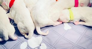 Our puppies include white, cream, and biscuit. Colors will vary depending on the parent dogs.