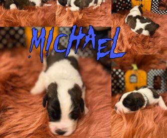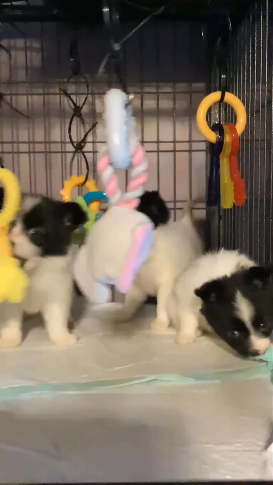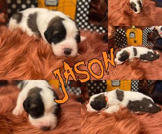 Our puppies include white and black, red white and sable, brown and white, black red and white, and black brown and white. Colors will vary depending on the parent dogs.