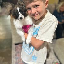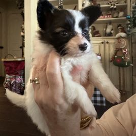 us regarding pregnancy, birth date, and letting us know that she was ours, the one female of the litter. We were so excited that we picked her up the morning she was ready to leave her birth mom and come live at her forever home. We’ve had two papillons in the past, so we knew what to expect with a papillon. Sassy is pure papillon and so smart, well behaved, wants to please, and just a “happy pappy!” Thank you for our baby!