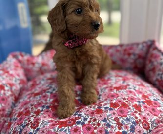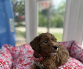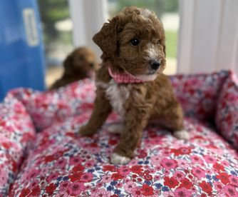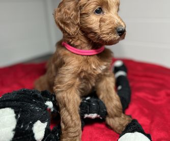 Ruby is a female Goldendoodle. Carefully selected as a great representative of her breed, Dawn decided to make her part of their program. Dawn has passed Good Dog’s screening process, which involved a review of their breeding practices, environment, and the mental and physical health of their dogs.