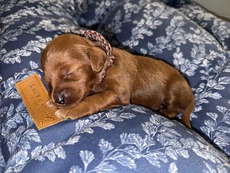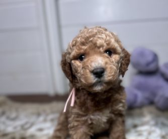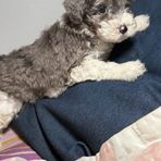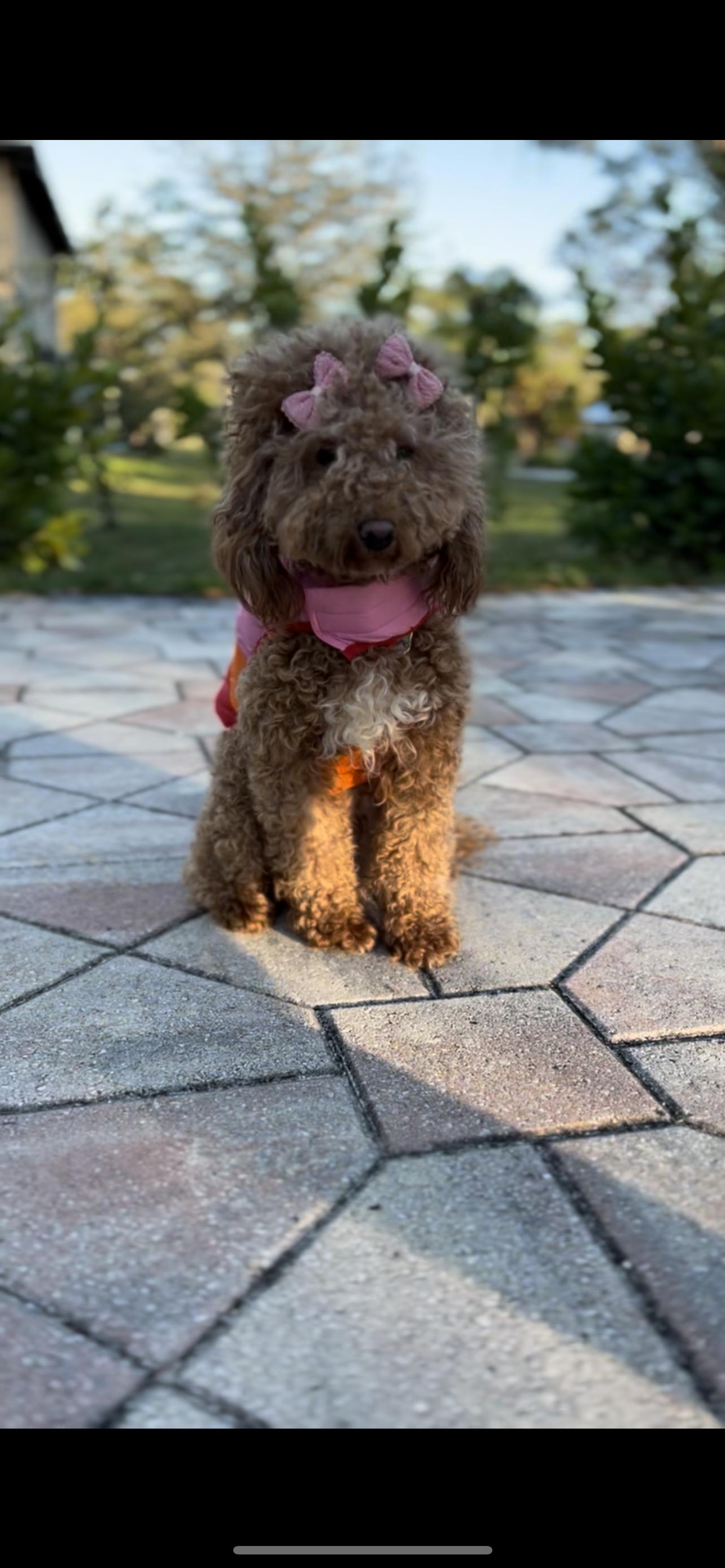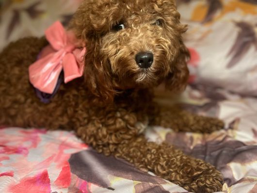 Fiona is a 7 lbs petite mini goldendoodle. She is the most affectionate mama. She sleeps cuddled up on my pillow every night.