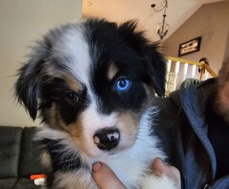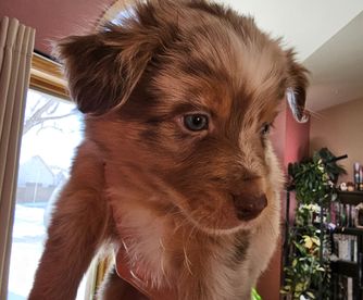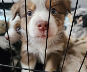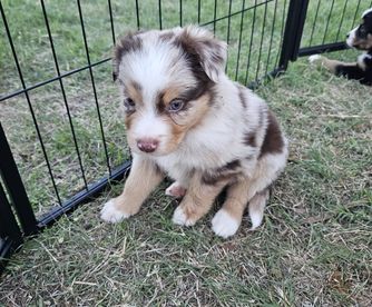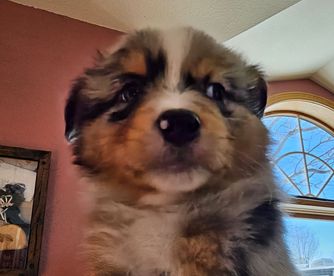 Our puppies include blue merle, black tri, red tri, and red merle. Colors will vary depending on the parent dogs.