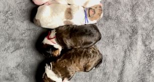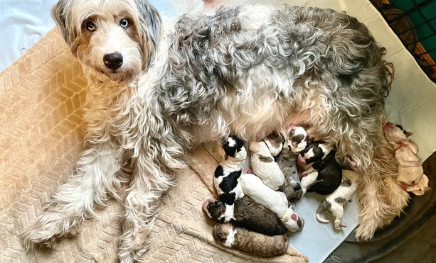 Breeding dogs are Embark DNA and Vet cleared. Puppy curriculum includes ENS ESI, exposure to various sounds, smells, touch, textures, weather and activities to increase confidence and development, beginning potty training and crate training. Puppies come with 1 year genetic health guarantee, Vet health check, vaccine, dewormer, microchip, starter puppy food, mom and litter scented mini blanket.