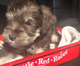 Our breeding dogs have been AKC DNA tested for superior genetics with no defects. These puppies are cuddled daily, introduced to potty training, basic commands and are exposed to different environments (such as TV, vacuum, appliance sounds, adults, children and other dogs). They are acclimated to car rides and even come with a harness and seatbelt attachment for safety in the car.