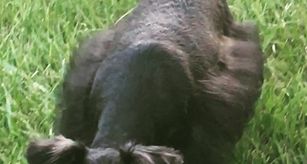 Lottie truly is a black beauty. One of my smaller girls, weighing in at 9 pounds, Solid black, carries for Parti, Roan and ticking. She has made some of the most stunning puppies. Lottie has a non-fade mega hair coat and deep, rich brown eyes. There is not a mean bone in her body. She does like to bounce around the yard like a little bunny if she hears the neighbors dog barking. It’s all in fun. She is the mother to my sire Mikey/legend.