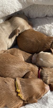 Our beautiful Red Miniature Schnauzer, proven Sire. A perfect 12 lb bundle of love. Angel is a joy to live with. A Smart, happy, healthy, fun, toy loving, cuddly and ever eager to please young man! He loves people, low barking, and gets along with everyone from dogs to cats, kids and adults. Did I mention he’s a joy to live with? ❤️ Angel has undergone genetic testing. He is 100% Schnauzer and 100% health clear. His offspring are proving to be as beautiful as he is, possessing his perfect temperament and gentle fun loving personality. A stunning 9/10 red intensity gives his offspring a most amazing red coat.