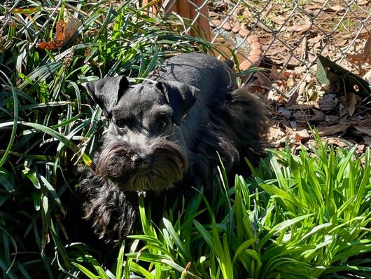 Glory B, an absolute Glorious Black Sable. A timeless beauty. She is a non-fading, mega coat with straight coat hair. Tried and true over the years, Glory has not faded at all. She has produced some of the most beautiful offspring my home has ever seen. Gorgeous sky blue eyes, her amazing eagerness to please, paired with temperament and personality, anyone would enjoy having in their home. Happy to lay at my feet, on the couch or in the bed with me. Car rides are always a new adventure with her. She always enjoys going with. Glory has been DNA tested. She is 100% Schnauzer and 100% health clear. Glory weighs 14 pounds.