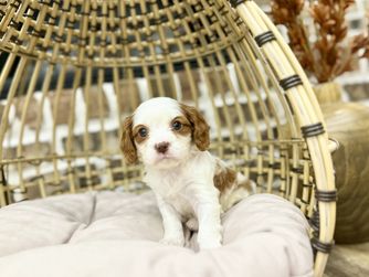 Our puppies include blenheim, ruby, tri-color, black and tan, and chocolate. Colors will vary depending on the parent dogs.