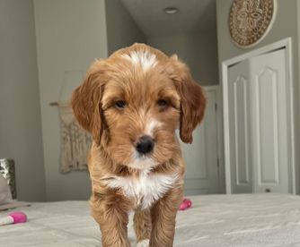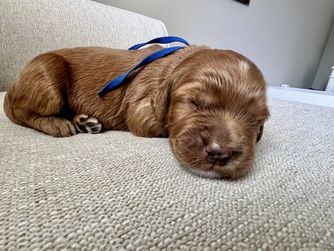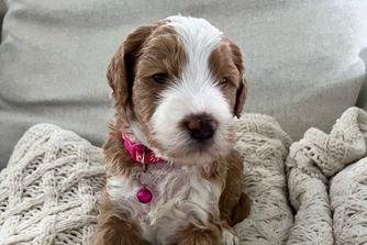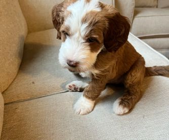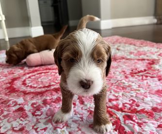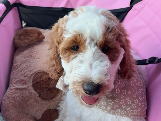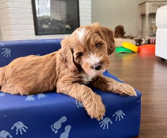 Little Tilly is a female Goldendoodle. Carefully selected as a great representative of her breed, Jamie decided to make her part of their program. Jamie has passed Good Dog’s screening process, which involved a review of their breeding practices, environment, and the mental and physical health of their dogs.