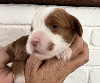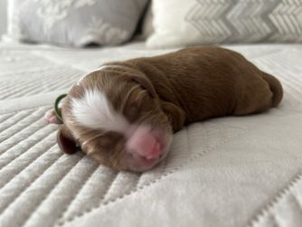 Say hello to Paisley, a stunning red and white tuxedo-coated beauty who's more than just a pretty face—she’s a perfect package of grace, charm, and love. As a proud mom dog, Paisley brings both elegance and warmth into every moment. Her coat is eye-catching, but it’s her sweet, nurturing nature that truly makes her unforgettable.