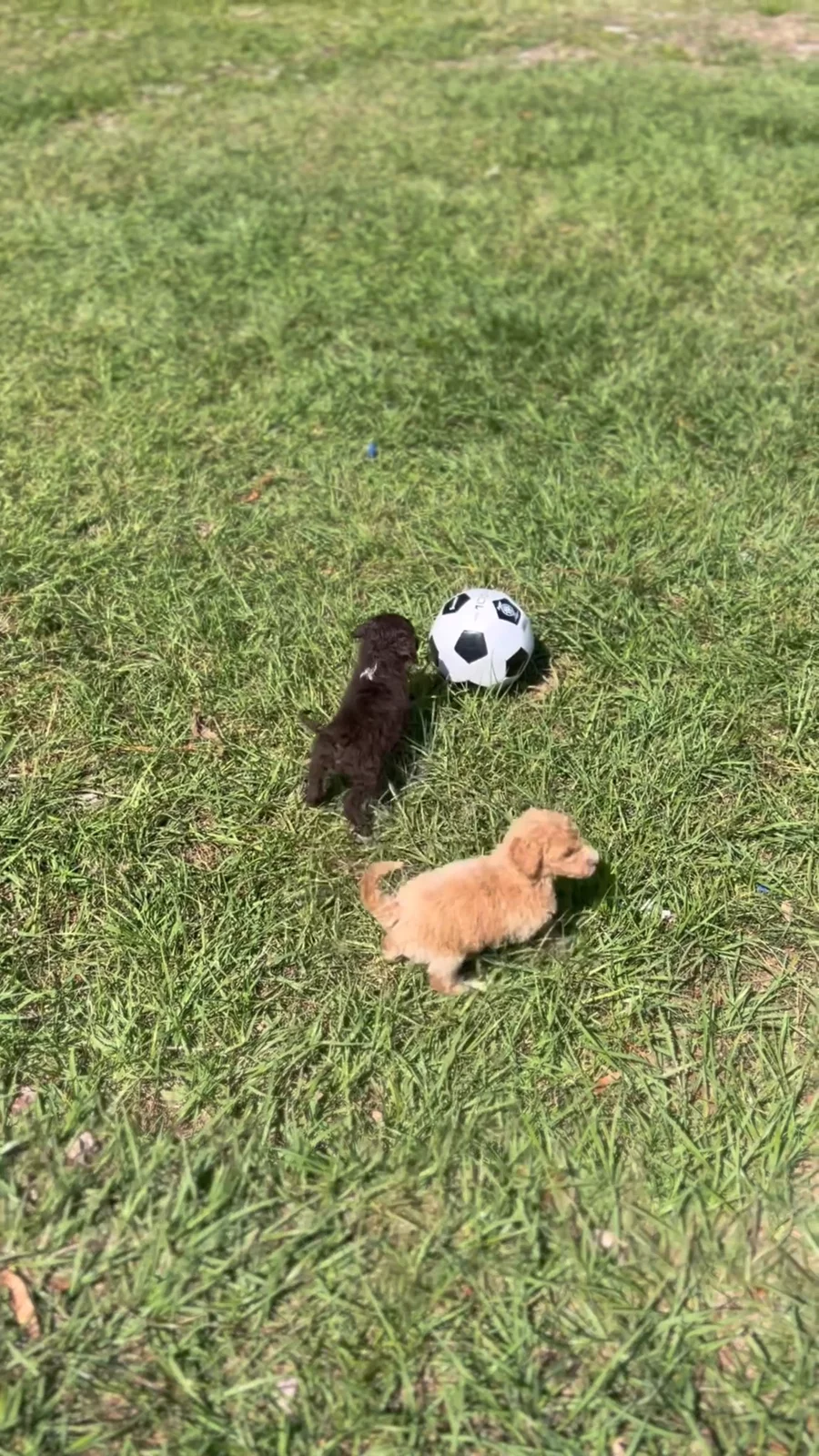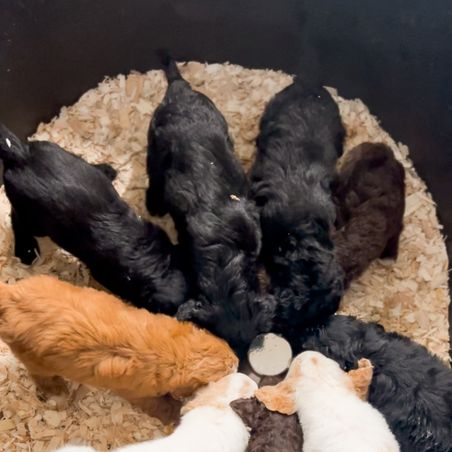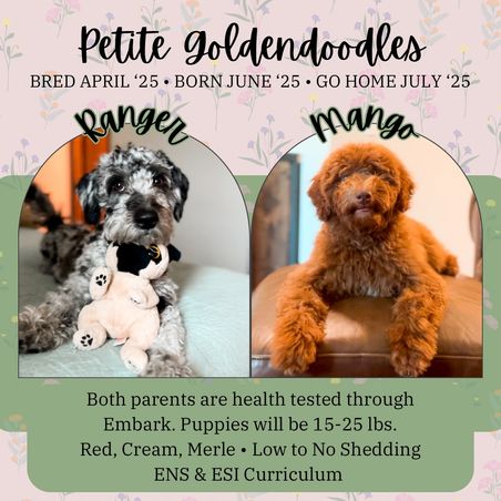 Our puppies include miniature and medium sizes. Sizes will vary depending on the parent dogs.