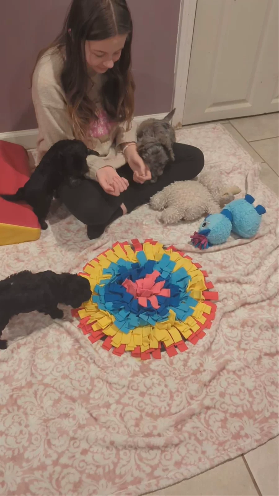 Jacqueline with The Cuddly Dood Ranch was amazing! We lost our girl a couple years ago and it was an emotional decision to add another furry family member after the hurt. She was patient with us and gave us all the information we needed for her pups. She video chatted us so we could see their personalities first hand. We ended up deciding on Hershey (now Bucky Blaze!). She gave us a ton of information for crate & potty training as well as some tips and tricks since we’ve never had a doodle breed before. She even went out of her way to drive our Bucky boy from Alabama to Tampa, Florida after my husband’s pto was declined! He is the SWEETEST boy and we are beyond happy to have him join our family. As my daughter has stated “he was the missing piece of our hearts”. If we add another furry family member, we will for sure be using The Cuddly Dood Ranch!