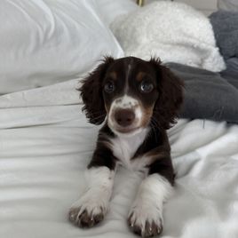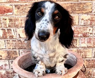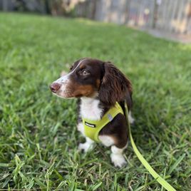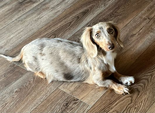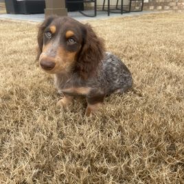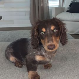 Vickie was very responsive and met me at the AUS airport which was so helpful as I had a connecting flight there. She kept in contact with me when I had any questions / check-ins even after picking Pickle up! Pickle is the light to my whole world and so happy to have gotten him. He is full of spunk, personality, silly and super playful but also a major napper haha. He is now 8 months old (I picked him up end of December) and he's about 12-13lbs but in great composition and build. I 10/10 recommend Vicky and The Dachshund Den!