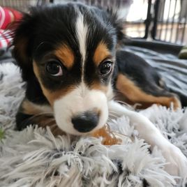 Our Companion Cross puppies include black and white, blue, and black and tan. Colors will vary depending on the parent dogs.