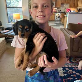 We recently adopted our precious Tinker, a companion breed Aussalier, from Darling Pups and are beyond grateful and overjoyed to have the most loving, affectionate, playful, super smart and sweetest pup imaginable in our lives. Darla is an incredibly nurturing, thoughtful, responsible and dedicated breeder - and it was clear how much Darla and her family love their doggies and take such special care of the puppies they so carefully match with families and forever homes. Darla made the entire adoption process a breeze and delight. She answered all of my questions, emails, calls and texts promptly and held our hands every step of the way. She took the time to get to know us, by video chatting and meeting in person, which showed us how important it was for Darla to not just find the right pup for our home and lifestyle, but to make sure we were the right fit for her precious pups. She knew we were the family for Tinker. And Tinker completes our family unit so perfectly. Darla also went above and beyond with all of the valuable resources, information, tips, tricks and guidance she provided to help us prepare for our new puppy. She is extremely organized and also helped us tremendously when prepping for our flight home with Tinker. She gave us a take home bag packed with absolutley everything a person may need when traveling with a puppy - for any situation. Pee pads, chew toys, treats, food, ziploc bags, Tinker's favorite blankets, and all of her records and breeder info in a neat binder. She also recommended that we mail the airline carrier to her house beforehand, so she could dedicate some time to help Tinker get comfortable with the carrier. By the time we took Tinker with us on our flight home, she was already used to the carrier and she slept the entire flight home, safe and cozy, thanks to Darla. Tinker has also adjusted beautifully to her new home, is so playful and affectionate with our kiddos, and is enjoying meeting our extended family and friends. She is calm and confident in new environments and when meeting new faces - thanks to the love, care, socializing and training provided by Darla and her family. We feel so lucky to have met Darla and her amazing family, and to have our sweet Tinker as part of ours now.