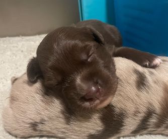 Our puppies include black, red merle, blue merle, and red. Colors will vary depending on the parent dogs.