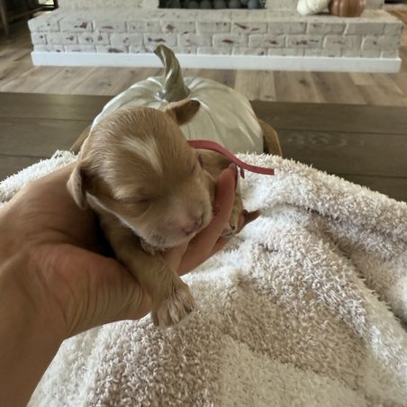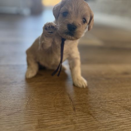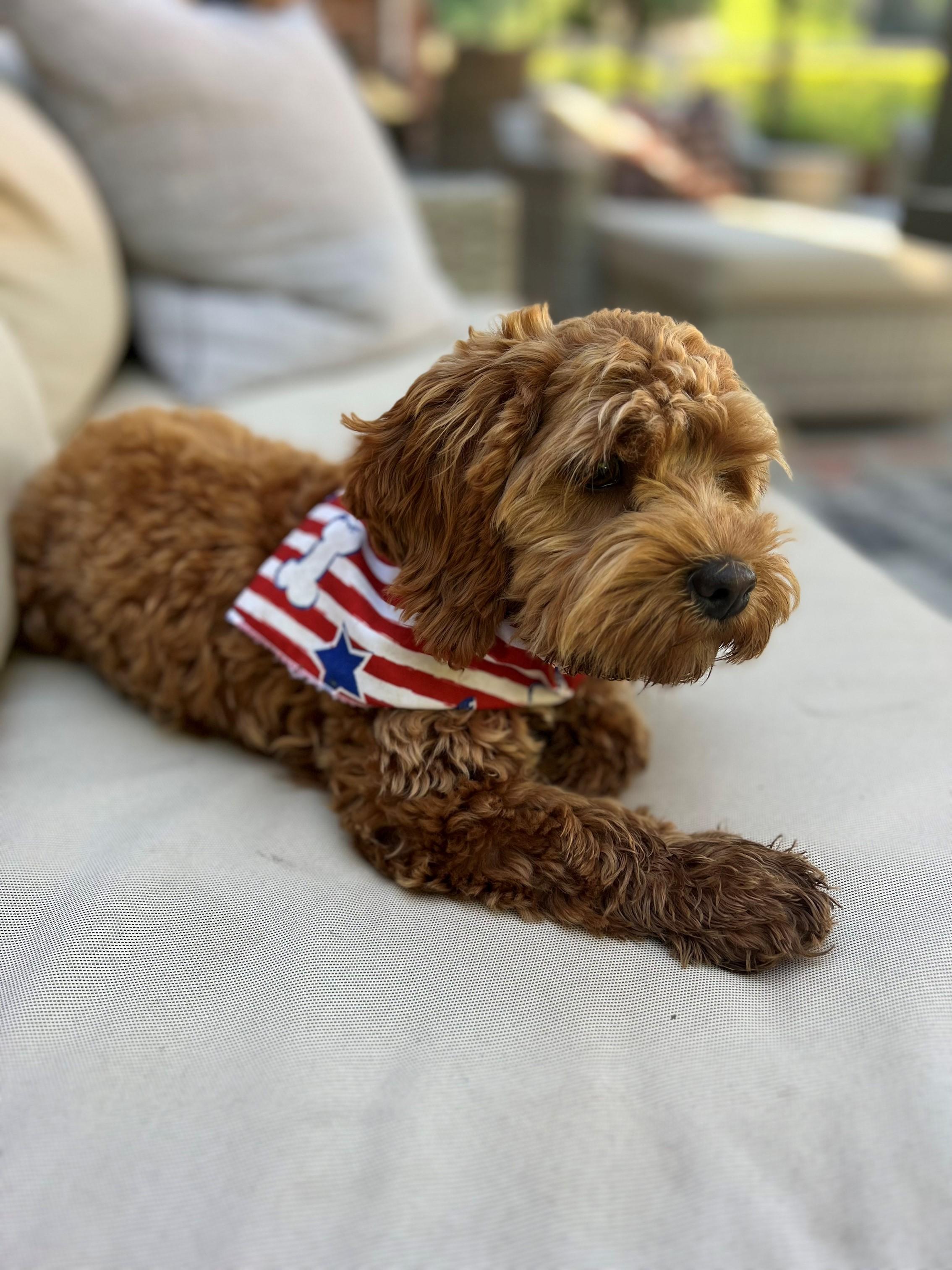 Georgie is our pride and joy! Once we decided a cockapoo was a good fit for our family, we reached out to several different breeders. There was an instant feeling of “this is the right one” with Faith, from The Doodle Barn. She responded swiftly to my 100 questions and then we had a great conversation on the phone. My husband and I were staying in Carmel, Ca for our anniversary and they drove all the down from their home to deliver Georgie to us. ❤️