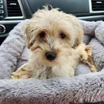 Faith was so sweet to work with, totally patient and extremely responsive. She sent tons of photos and videos and answered all our questions. This was our family's first puppy so we moved slowly and weren't totally sure of ourselves and there was zero pressure working with Faith. Charlie is perfect, in great health, he's cute bubbly, and came to us already pee pad trained and used to his crate. He slept through the night from Day 1!! Faith even helped coordinate a Christmas delivery for our kids which they'll remember forever.