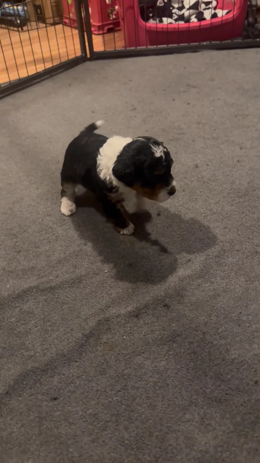 Our dogs are family! They live in the main part of the house with us and are loved on all through the day. My whole family is involved with them. We socialize them with the other adult dogs in our home. They begin potty training around 4 weeks. Pups get introduced to different sounds, sights, and items daily.