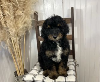 Raven is a female Bernedoodle. Carefully selected as a great representative of her breed, Angela decided to make her part of their program. Angela has passed Good Dog’s screening process, which involved a review of their breeding practices, environment, and the mental and physical health of their dogs.