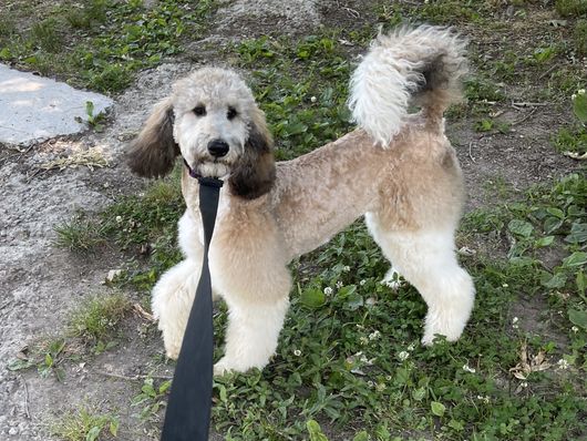 Coop is a male Poodle. Carefully selected as a great representative of his breed, Angela decided to make him part of their program. Angela has passed Good Dog’s screening process, which involved a review of their breeding practices, environment, and the mental and physical health of their dogs.