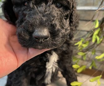 Harper is a gentle loving Poodle. She is Standard size. She is a gorgeous black based Sable Parti. She has a big personality and is so funny. She’s very human like and loves her people. She has appropriate health testing done. She is Akc registered also dual registered.