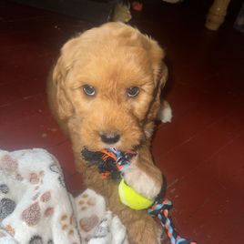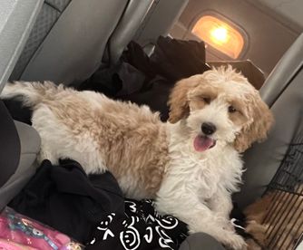 Sophie is a female Cockapoo. Carefully selected as a great representative of her breed, Erin decided to make her part of their program. Erin has passed Good Dog’s screening process, which involved a review of their breeding practices, environment, and the mental and physical health of their dogs.