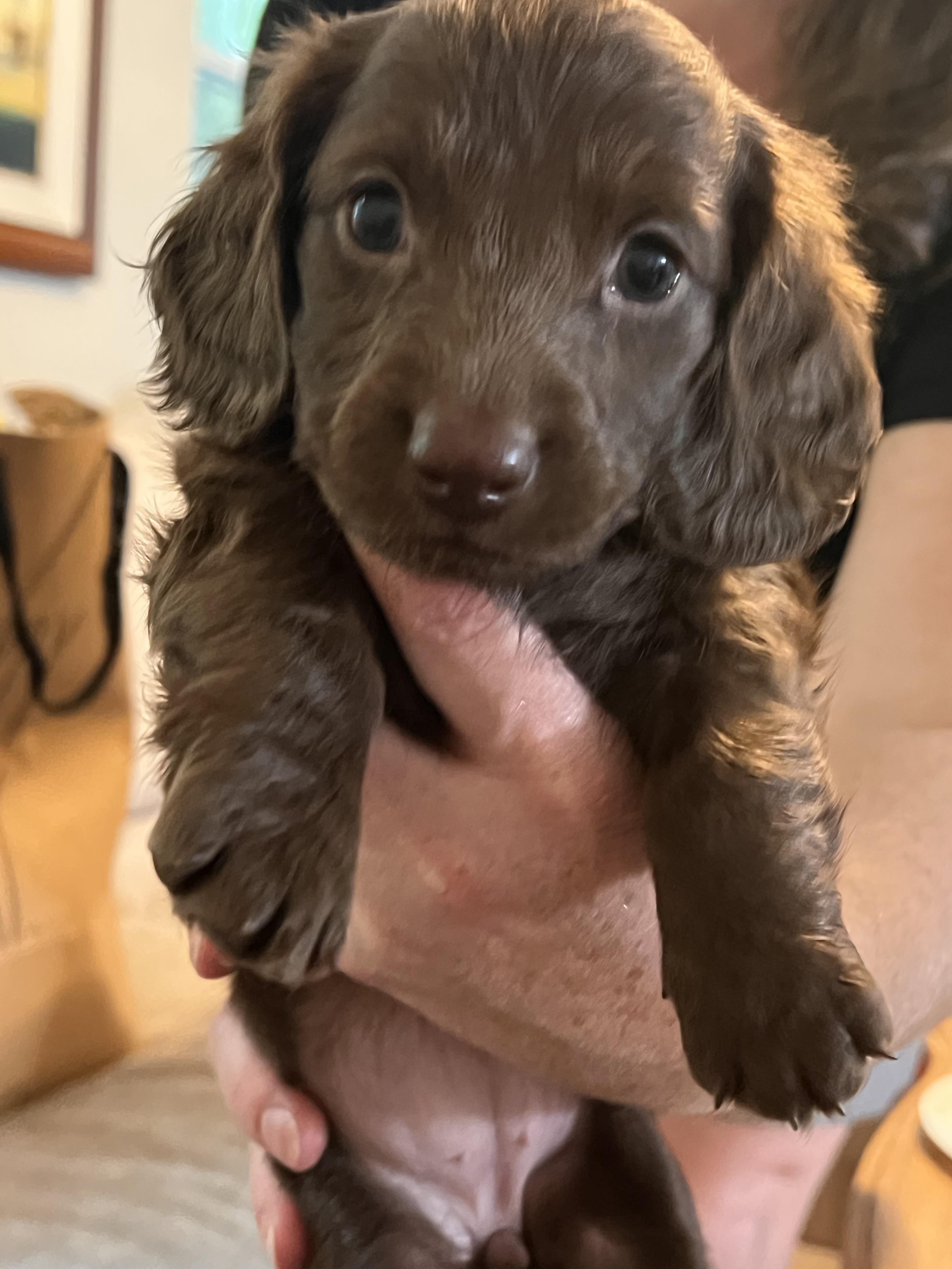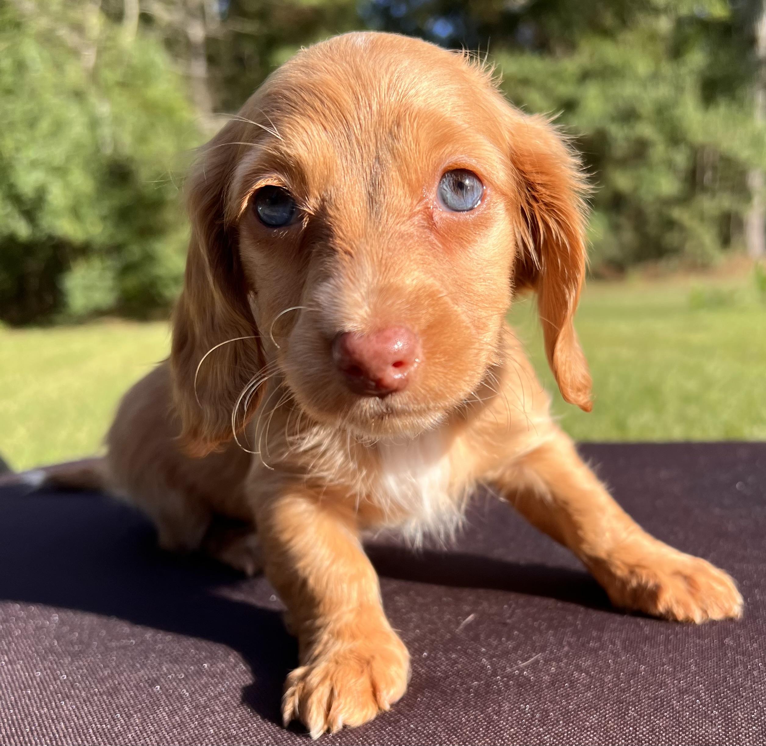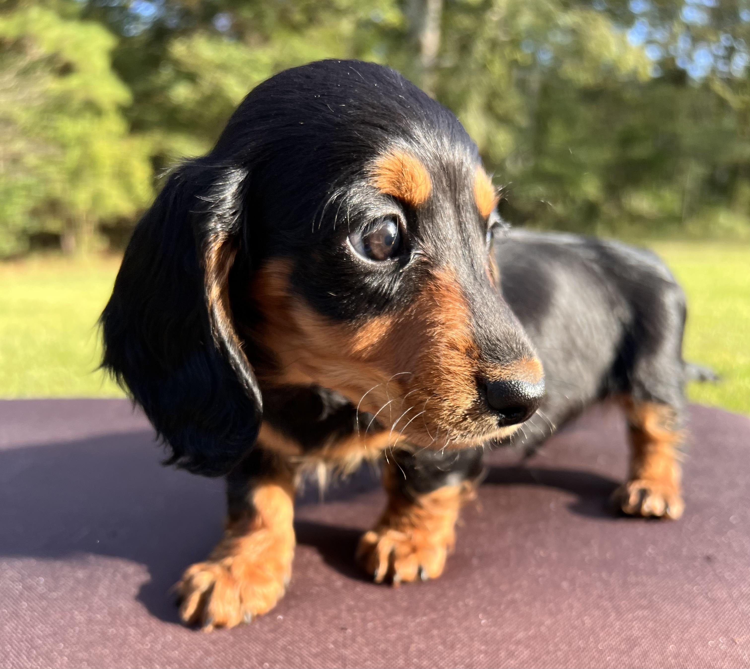 The amount of time and care I devote to my puppies. I start potty training at 5 weeks. They are taught family manners form the moment they are born. We health test all our breeding dogs. We teach puppies to be a part of a family from day 1. If you choose a Doxie Bar puppy-they will already be used to sounds of a home.