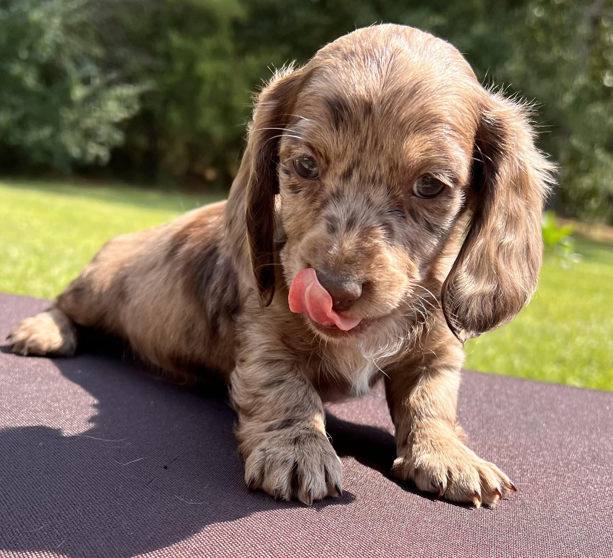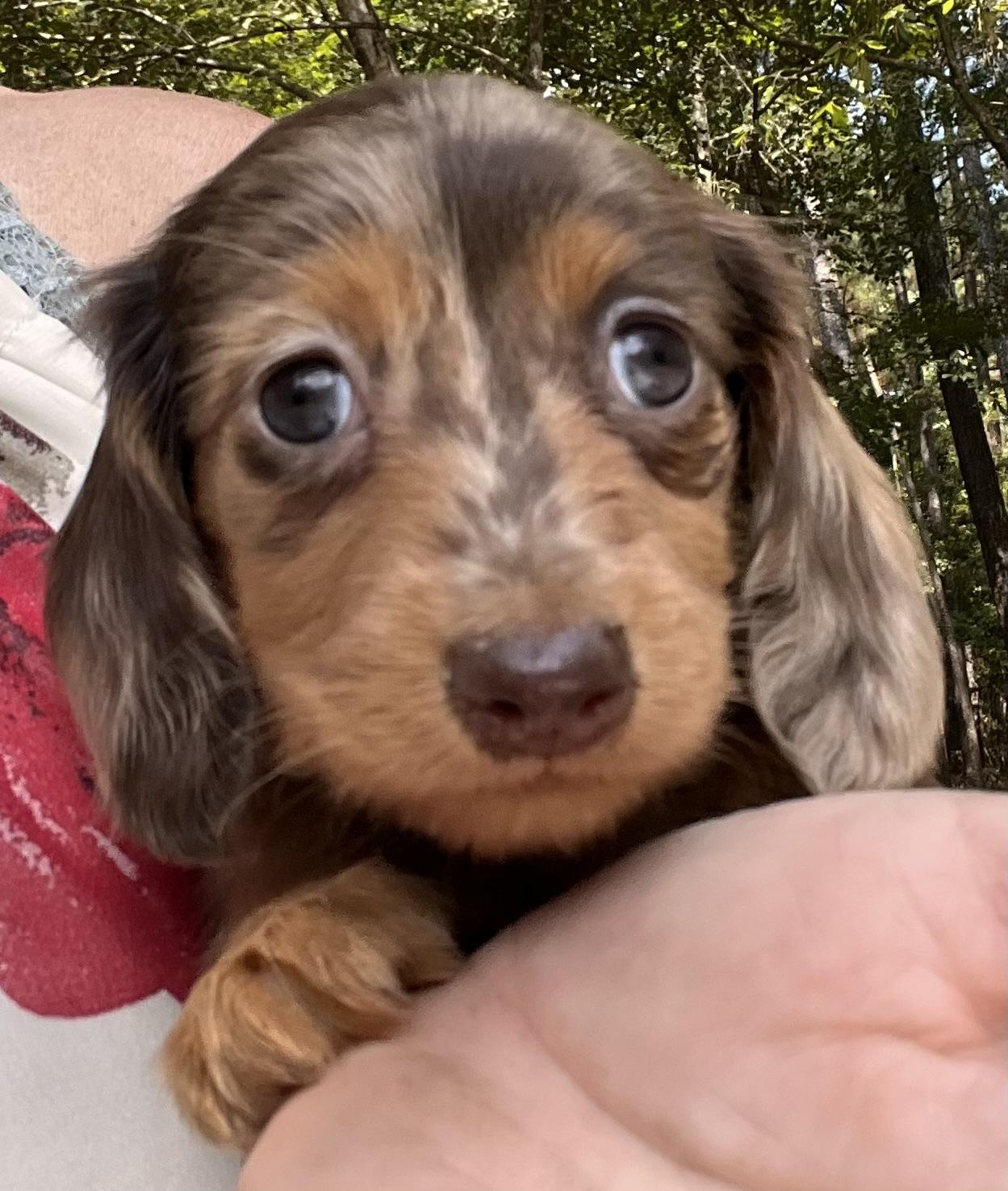 I'm Marie S., the breeder behind The Doxie Bar located in Calhoun, GA. We find so much fulfillment in providing loving canine companionship to other homes! The loyalty & loving disposition of this breed are simply the best! We put a great deal of effort into raising our litters to ensure our puppy families will have the best experience when adopting a Doxie Bar puppy!