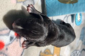 Paper is our couch potato. She loves visitors and all the attention she can get. Her temperament is amazing and this is something we strive to pass in our puppies. She plays well with children and loves cats, chickens, and other dogs.