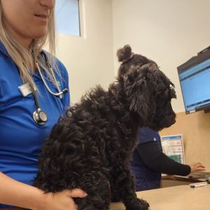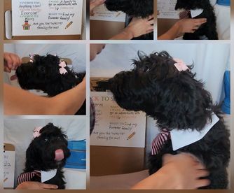 Here are a few pictures from their latest vet visit. The vet and tech were both so impressed with how well behaved they were for having multiple puppies in at the same time. 🫶
