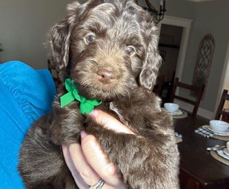 Fletch is a male Goldendoodle. Carefully selected as a great representative of his breed, Jessica decided to make him part of their program. Jessica has passed Good Dog’s screening process, which involved a review of their breeding practices, environment, and the mental and physical health of their dogs.