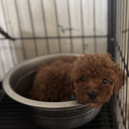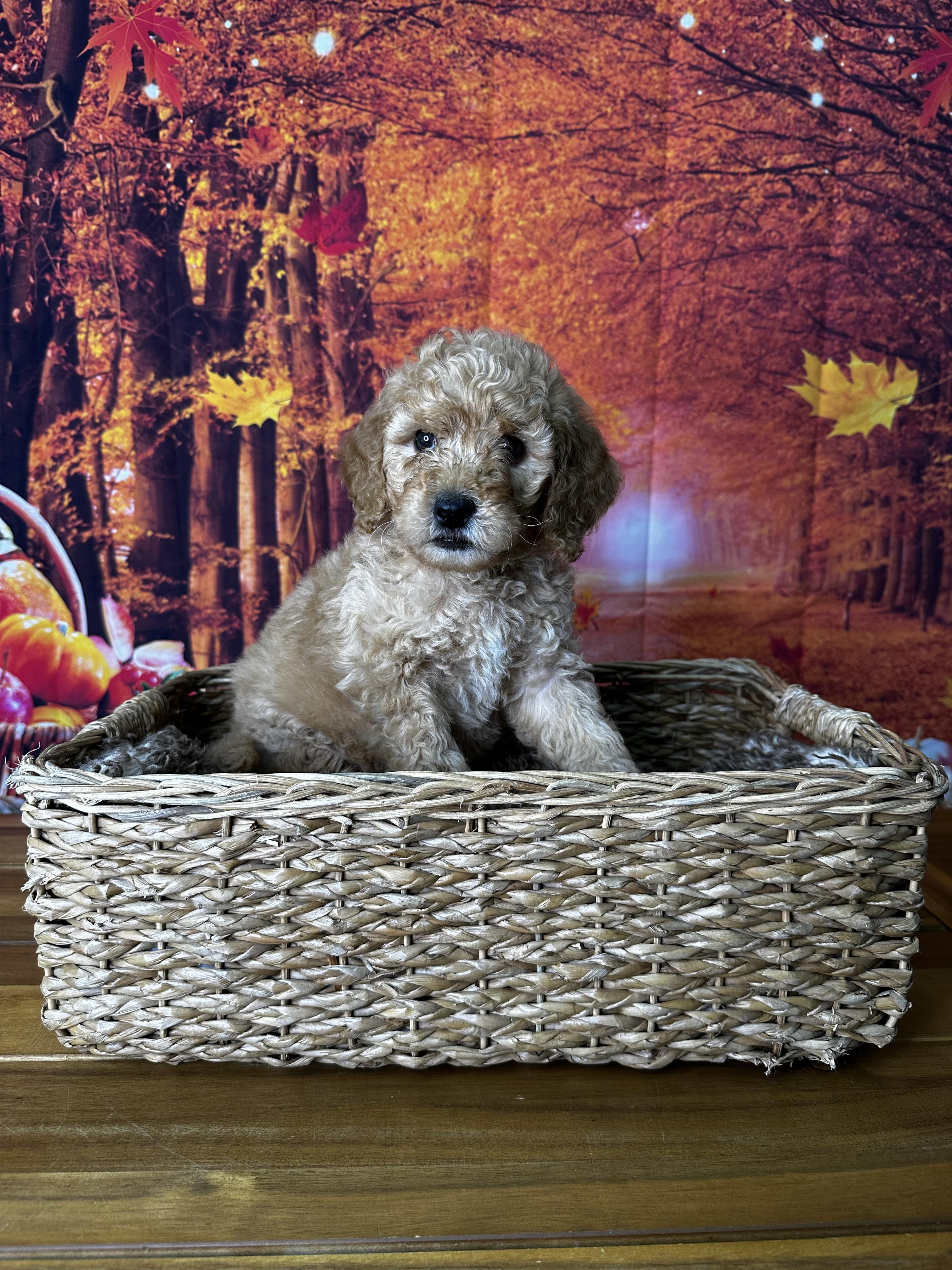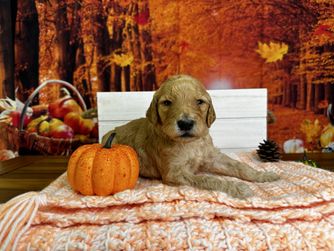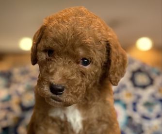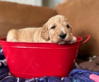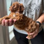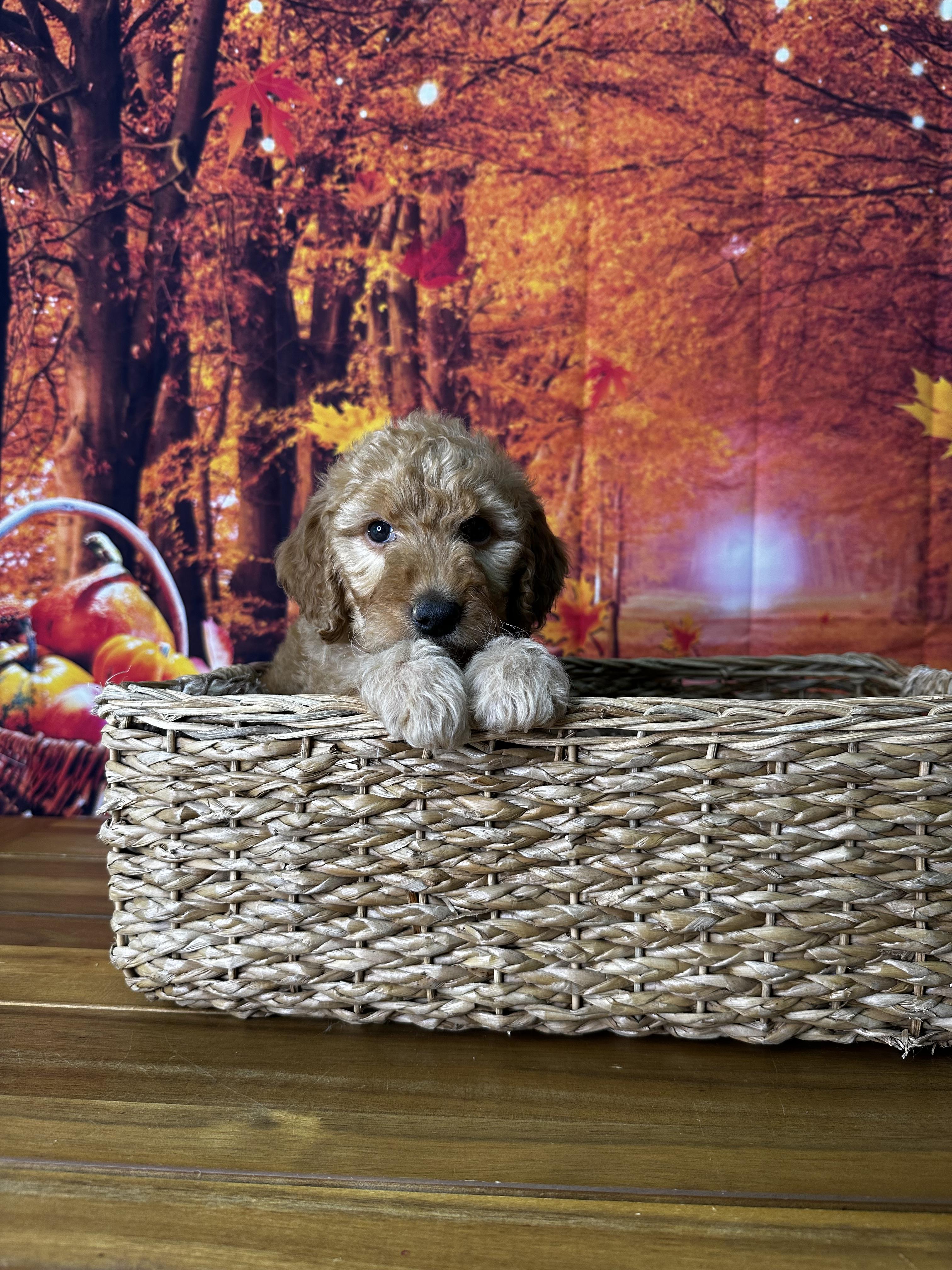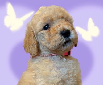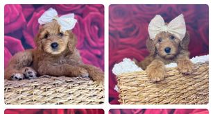 Our Cavapoo puppies include apricot and red. Goldendoodle puppies include cream, apricot, red, and chocolate. Colors will vary depending on the parent dogs.
